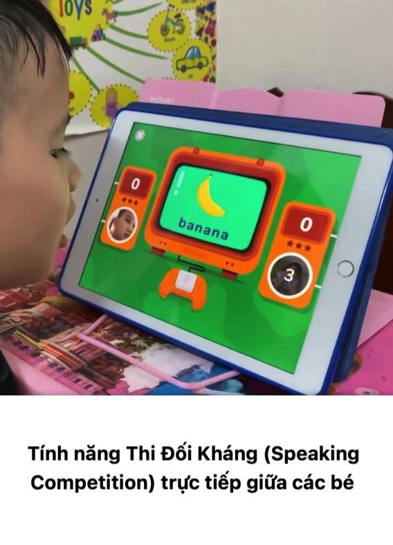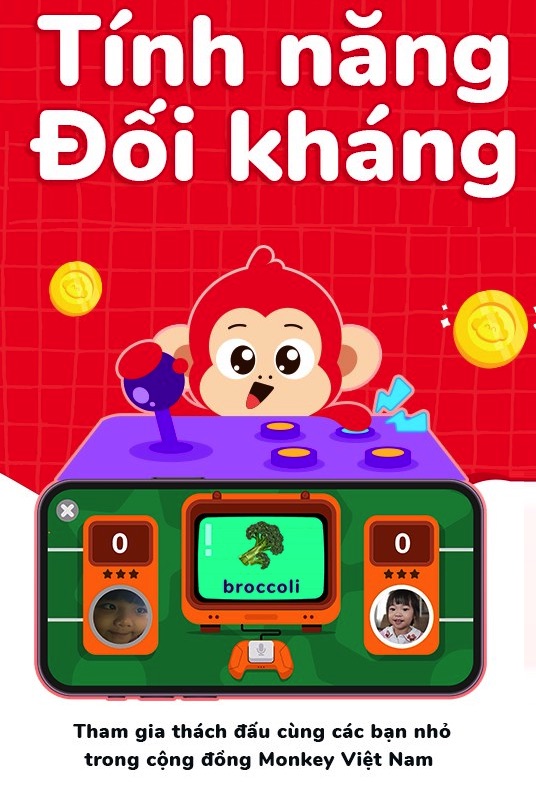 Bằng cách trò chuyện, thi đấu trực tiếp 1-1, sẽ giúp bé tập trung cao độ và phát huy khả năng phản xạ tốt hơn. Đây là hình thức học ngôn ngữ hiệu quả nhất mang tính ảnh phản xạ rất cao, thường được ứng dụng trong nhiều chương trình học ngôn ngữ quốc tế. Tính năng này trong Monkey Junior sẽ áp dụng cho bé trên 3 tuổi, khi bé đã biết nói, phát âm theo được. Vì trong lần đăng nhập đầu tiên (khai báo tên, tuổi), thì hệ thống sẽ tự động phân bổ hợp lý dựa vào số tuổi của con. Còn Babilala sẽ có sẵn (vì ứng dụng cho bé từ 3 tuổi).