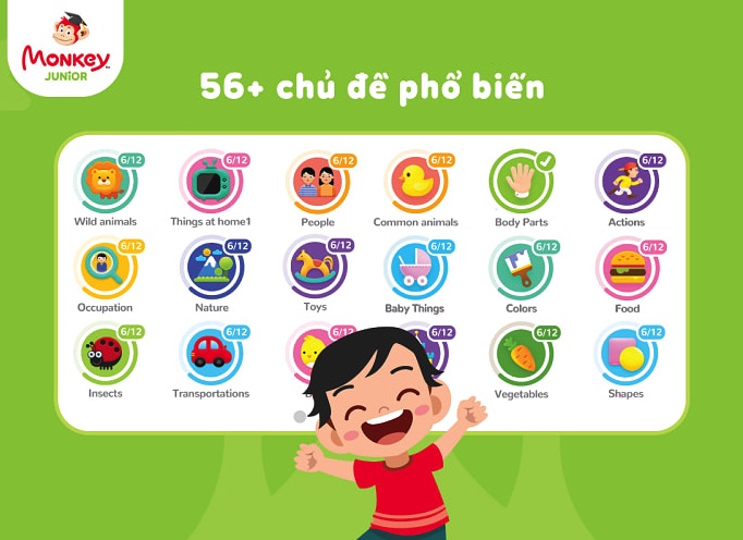 Monkey Junior là ứng dụng học tiếng Anh dành cho trẻ từ 0 đến 10 tuổi. Ngay cả khi bé chưa biết nói, chưa biết đi, mới sinh ra cũng có thể học được. (Nhờ ứng dụng phương pháp giáo dục sớm, nên các bé từ 0 tuổi đã có thể học được).